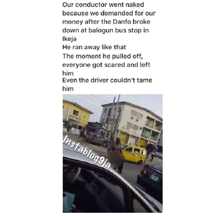 This happened in Ikeja lagos earlier today, Conductor Strips Unclad, Flees To Avoid Refunded Stranded Passengers.