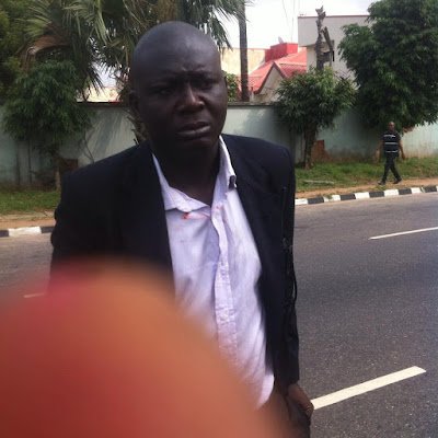 “Please, the pictures show how honourable Oladipupo Olorunrinu of Lagos State house of assembly instructed his Security guard to beat helpless citizen, please this man needs your assistance. You can see the blood coming from his face.”