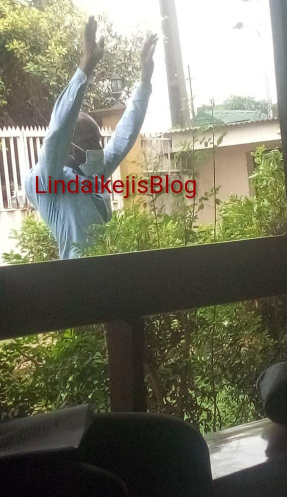 The man was in Court 2, Bode Thomas, Lagos, today, Feb 4, without wearing his face mask and when the magistrate noticed him, he was asked to stand outside the courtroom and raise his hands as punishment.