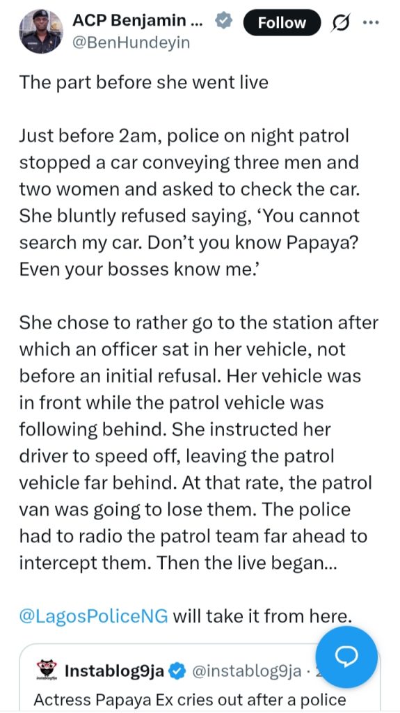 Lagos police PRO reacts to trending video of social media influencer Papaya Ex’s clash with a police officer