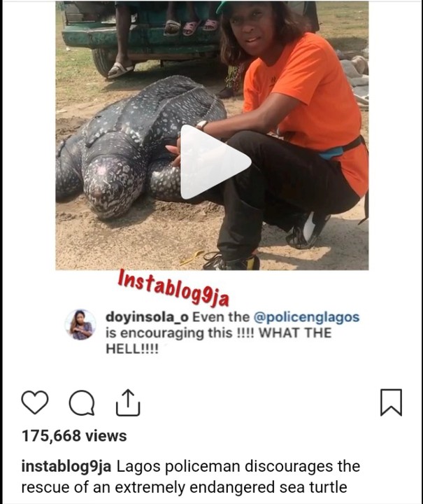 Lagos policeman discourages the rescue of an extremely endangered sea turtle…