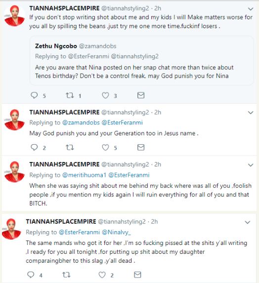 Toyin Lawani drags Nina on Twitter, calls her a bitch and accuses her of speaking ill of her   The last has certainly not been heard of the beef between serial entrepreneur, Toyin Lawani and her former meentee, ex-BBNaija housemate, Nina.    Recall that last year, Nina and Toyin made news after Nina met with Miracle in Ghana and Toyin went on her IG page to slam Nina. Few days after caling out Nina, Toyin in an interview with LITV, said all has been resolved between them and that they are cool.   Well, events of today January 2nd, points to the fact that all is not well between the former mentor and mentee.    Trouble started when Nina left a comment on Toyin Lawani’s IG post celebrating her son, Tenor’s birthday. While responding to Nina’s comment. Toyin reminded Nina that on her own birthday, she gave her a personal shout-out on her IG page and expected Nina to do same for her son.    Well, some of Nina’s fans found Toyin’s comment offensive. They went on twitter to tackle her and Toyin wasted no time to attack them and Nina. She threatened to reveal the real reason why herself and Nina fell out. Read all that she said on Twitter below: