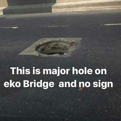 Lamboginny Raises Alarm Over Major Holes On The Eko Bridge In Lagos (photos)