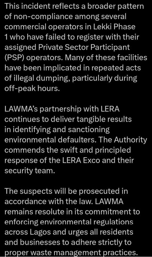 In the early hours of Saturday, 18th May 2025, the Chairman of the Lekki Estate Residents Association (@Lekkiphase1_ ) alerted us to an incident involving the illegal dumping of refuse along Durosimi-Etti Street in Lekki Phase 1.