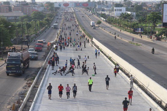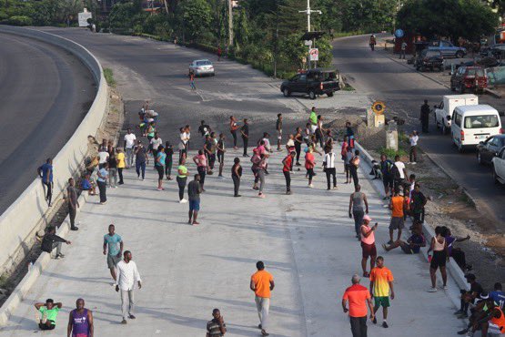 Lagosians on Monday morning took over the Gbagada expressway for fitness exercise in violation of the social distancing order by the government.