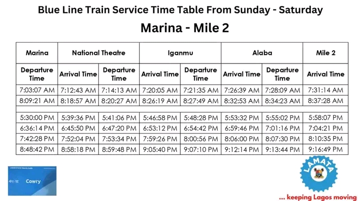 LAMATA Realeses Blue Line Railway Schedule For This Week