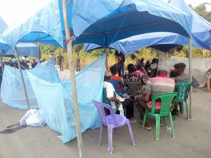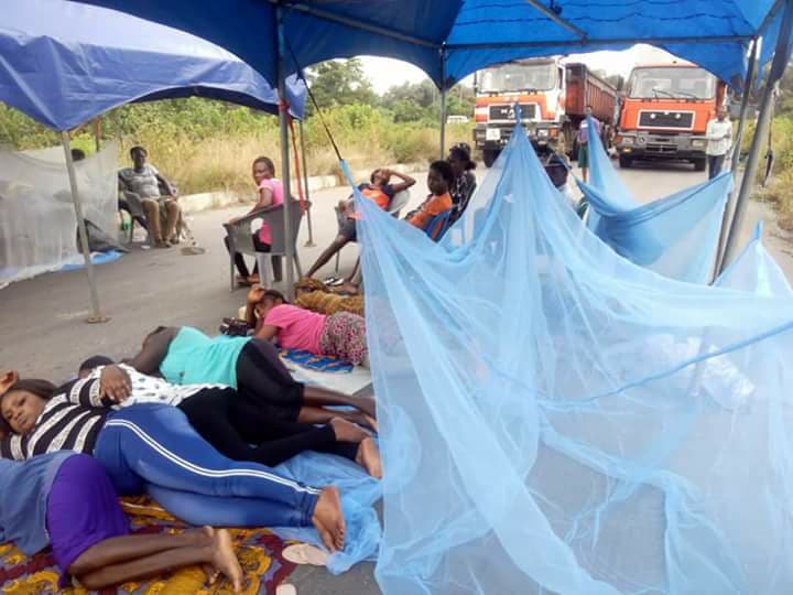 Meanwhile, the protesters landed at the area with mosquito nets, bags of rice other food stuffs and cooking items.