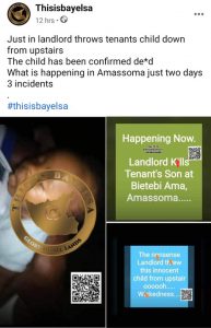This happened in Bayelsa earlier today reported that a Landlord threw his tenant’s two month old baby from a storey building.