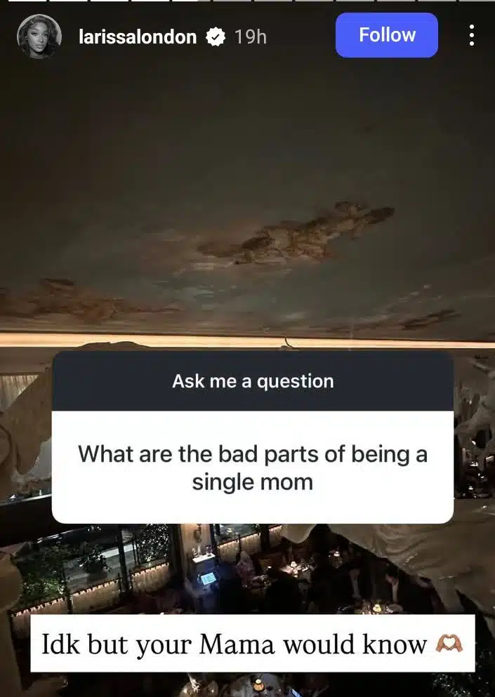 Larissa London, Davido’s fourth baby mama and a British-based Angolan beauty entrepreneur, stirs buzz with her response to a comment about single mothers.