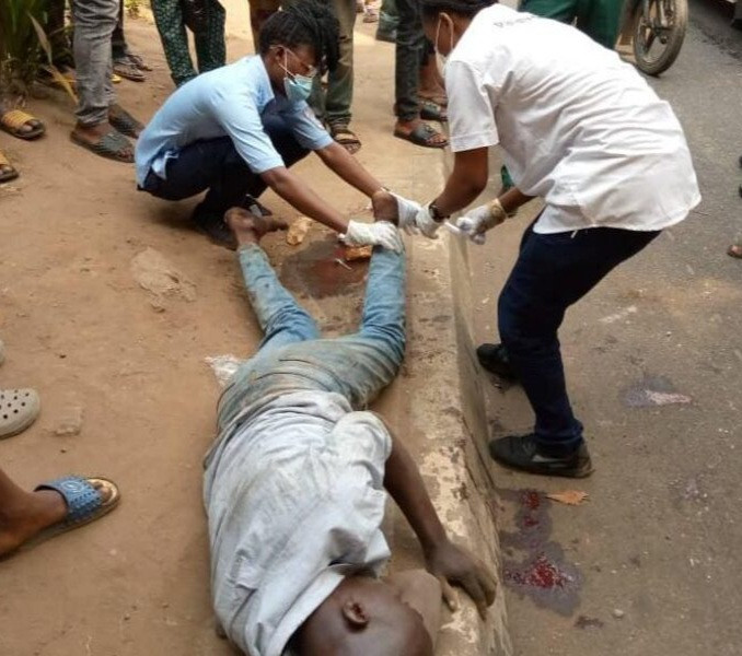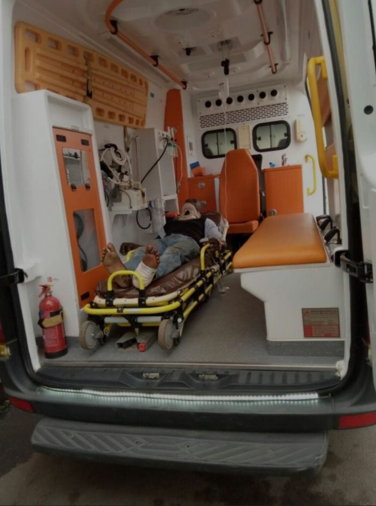 “At the scene, safety was ensured, wound was irrigated, the victim was assessed and vitals checked with BP 130/80mmHG, PR 92bpm, RR 22cpm, spo2 92 per cent, gcs 15.