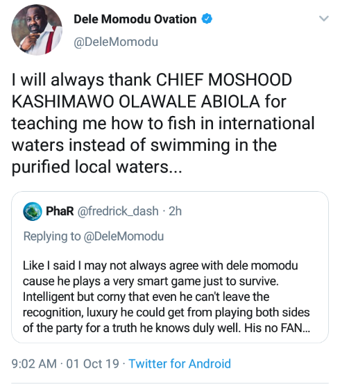 Mr Momodu, publisher of Ovation Magazine, said this on Tuesday in reaction to a tweet.