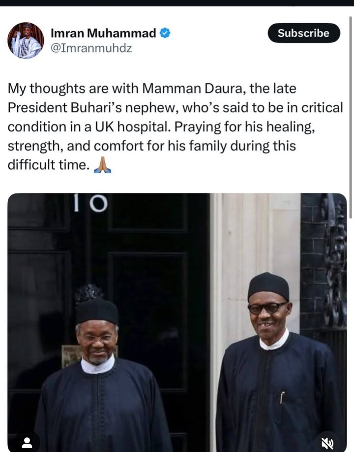 Mamman Daura, a nephew and close associate of former Nigerian President, Muhammadu Buhari, reportedly hospitalized in London due to an undisclosed illness.