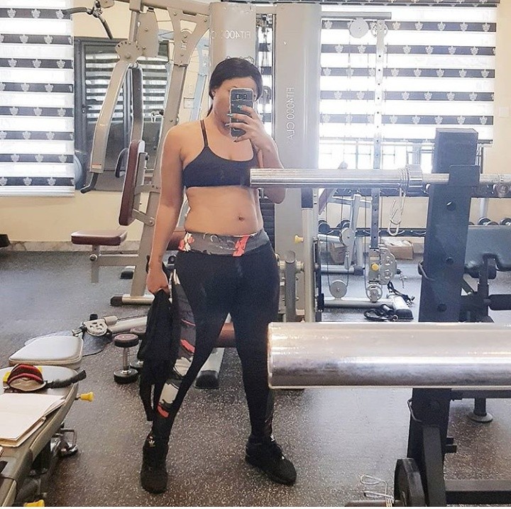 The popular author, Laura Ikeji who is a sister to rich billionaire blogger, Linda Ikeji storms a gym, shares adorable workout photo rocking suitable gym outfit.