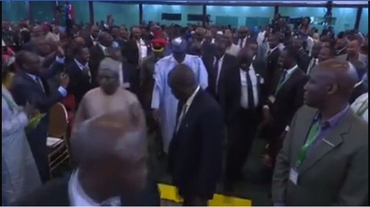 On Sunday, president Muhammadu Buhari declared open the 58th Annual General Conference of the Nigerian Bar Association (NBA) in Abuja, the nation’s capital. The president received a ‘Sai Baba’ farewell from the lawyers when he was leaving International Conference Centre (ICC), after declaring open the event.