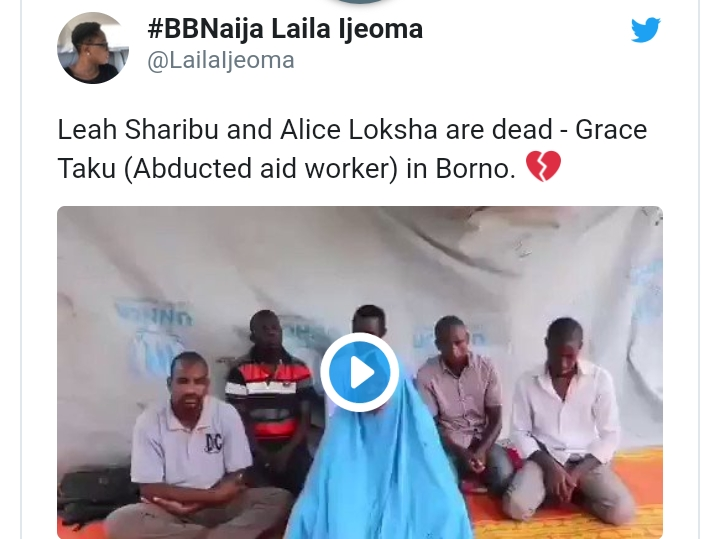 Grace Taku in a recent video reveals that Leah Sharibu and Alice Loksha who were abducted by Islamic State West Africa Province (ISWAP) are now dead as the terrorist group killed them due to non intervention be the government.