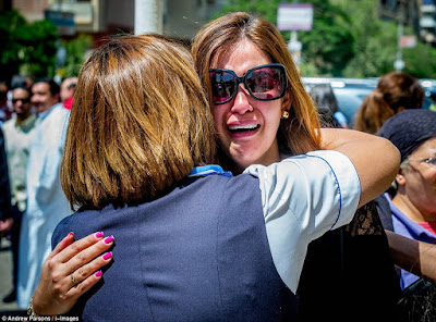 Gripped by grief: EgyptAir stewardesses console each other outside the Al Sedeq mosque where hundreds of mourners gathered to offer prayers for the crew of missing EgyptAir flight MS804The leaked data was filed through the Aircraft Communications Addressing and Reporting System (ACARS), a data link for sending messages between planes and ground facilities.