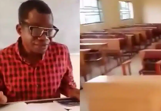 A Nigerian lecturer has gone viral after teaching an empty classroom, allegedly due to students failing to show up for lecture.