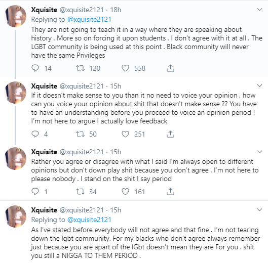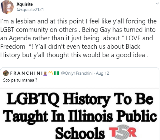 @xquisite2121 in a thread posted on her timeline, said by forcing such history on children, it shows that the LGBTQ community is being used.