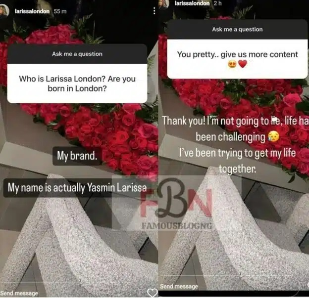 Another netizen praised her beauty while urging her to give them more contents; Larissa London in response revealed that behind the facade she portrays, things have been quite difficult for her and she’s been trying to get things together.