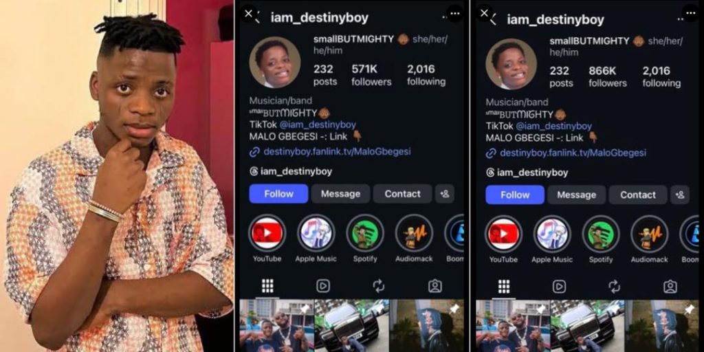 While mourning continued, attention quickly shifted to Destiny Boy’s Instagram page after an X user noticed a sudden surge in his followers.
