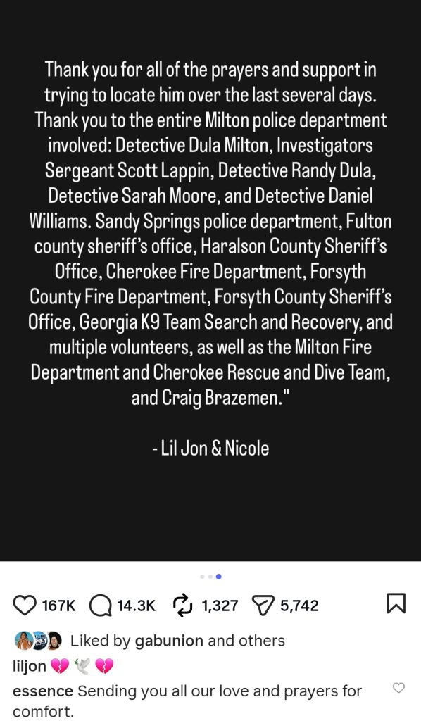 “We loved Nathan with all of our hearts and are incredibly proud of him. He was loved and appreciated, and in our last times together we’re comforted in knowing that we expressed that very sentiment to him,” Lil Jon lamented.