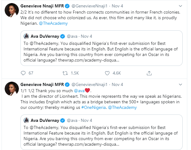 LionHeart Movie Disqualified From Oscar Consideration, Genevieve Nnaji And Ava DuVernay React - 9jaflaver