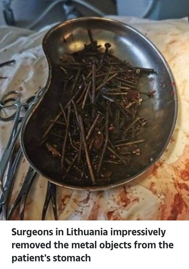 Medics were tediously tasked with making sure they had fished out the sharp metals by regularly scanning the patient’s stomach.