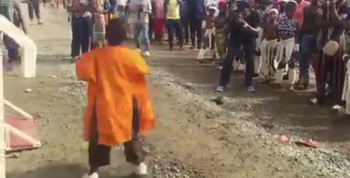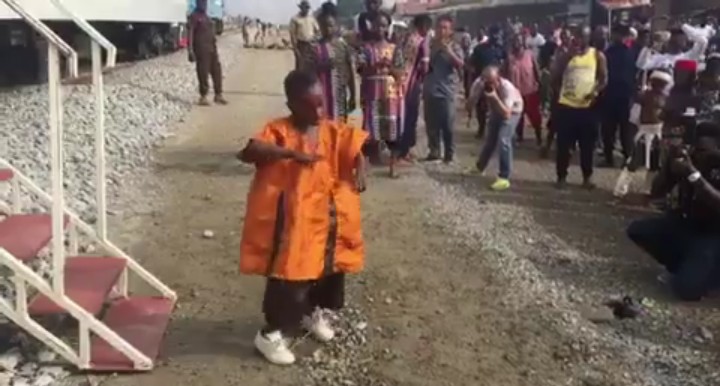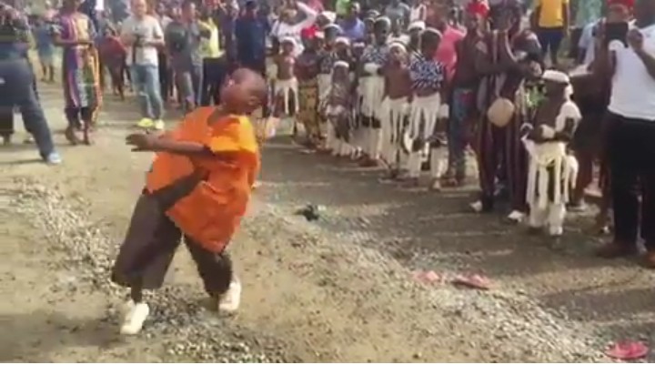 As seen in this viral video, This little boy rocks native agbada as he entertianed the crowd with his miraculous zanku dance steps, dancing zanku to a cultural beat.