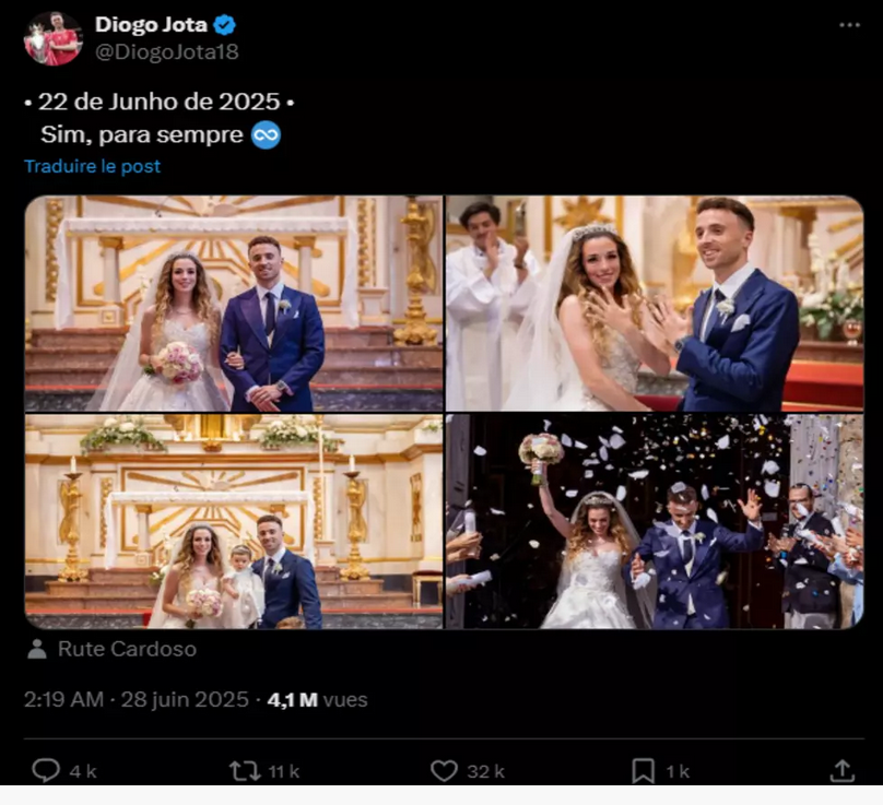 Jota had married his partner Rute Cardoso on June 22, posting a video of their wedding on Instagram just hours before the accident.