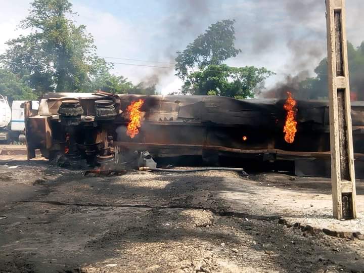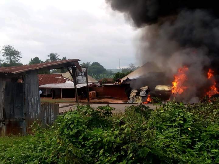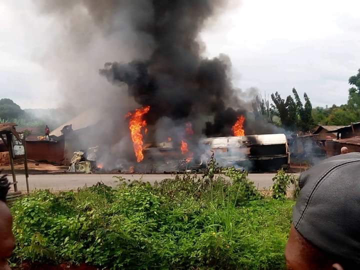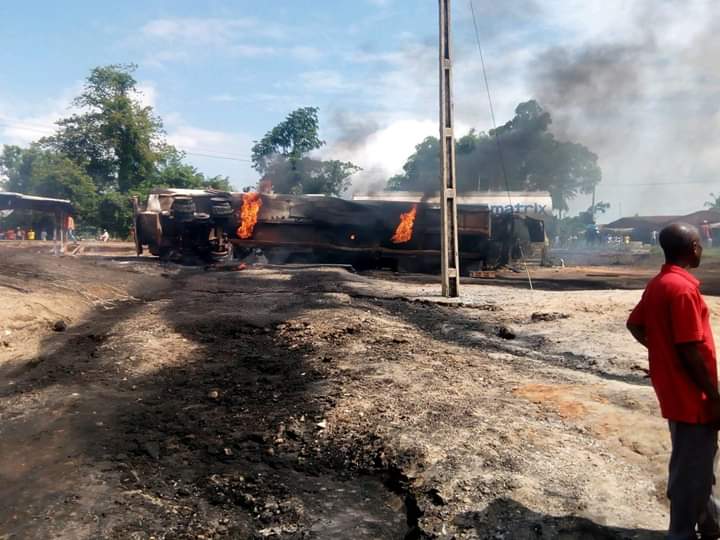Report reaching MandyNews.com, that An explosion caused by a tanker carrying a load of fuel fell of the ground and exploded in seconds at Uzogholo Junction opposite St Joseph Catholic Church Uzogholo Ewu, Esan Central LGA, Edo State. on Saturday, resulted in the death driver and motor boy burnt alive, houses and other properties worth millions of naira.