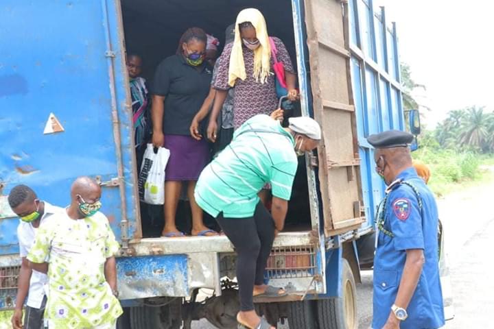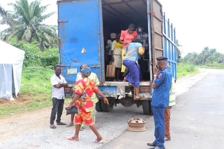The women who came from Akwa Ibom state and were on their way to Aba, were arrested with the truck driver and two of his conductors for violating the border closure and lockdown order by the State Government.