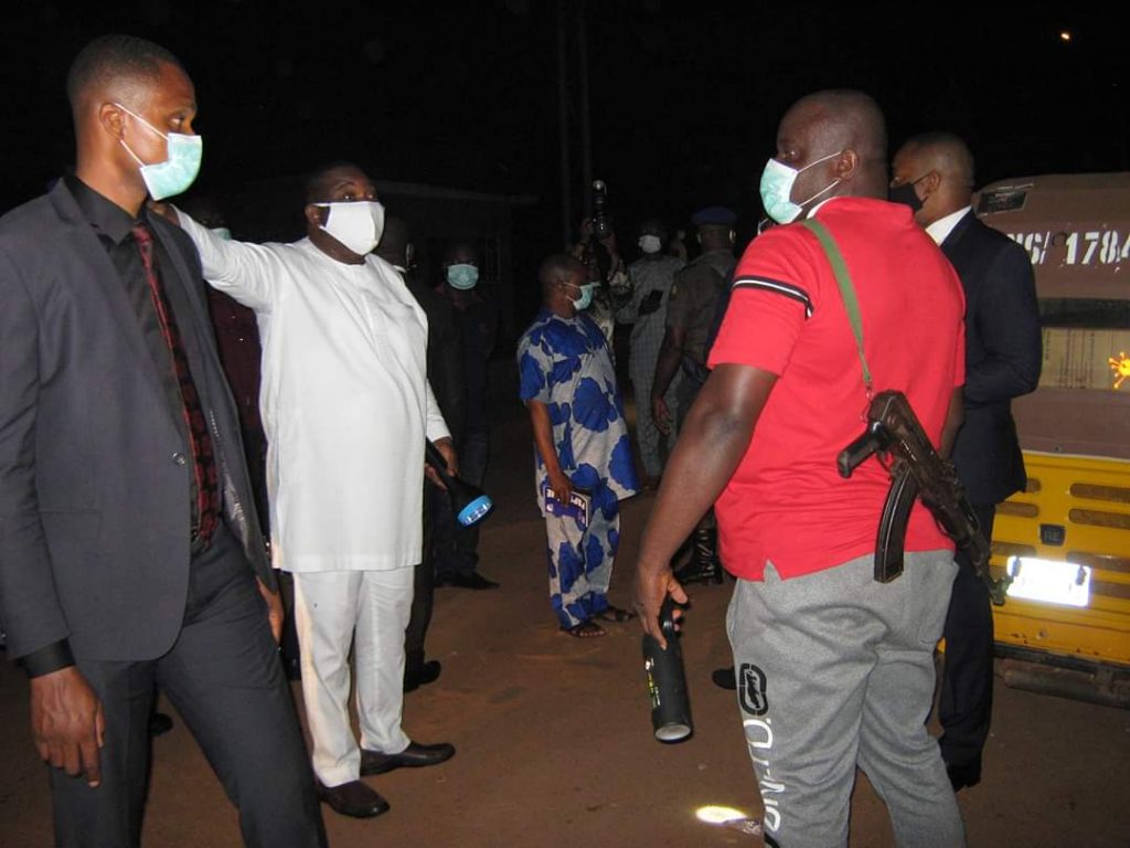 IgbereTV reports Governor Ifeanyi Ugwuanyi of Enugu State on Tuesday night defied the rain in Enugu in order to enforce the Presidential directive on 8pm – 6am nationwide curfew in the state, for the safety, health and wellbeing of Enugu residents.