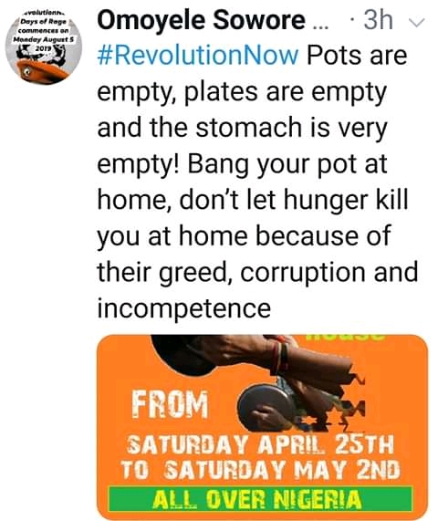 Lockdown: Sowore Launches Pots Pan Protest (PPP) Against Buhari (Photo) - 9jaflaver
