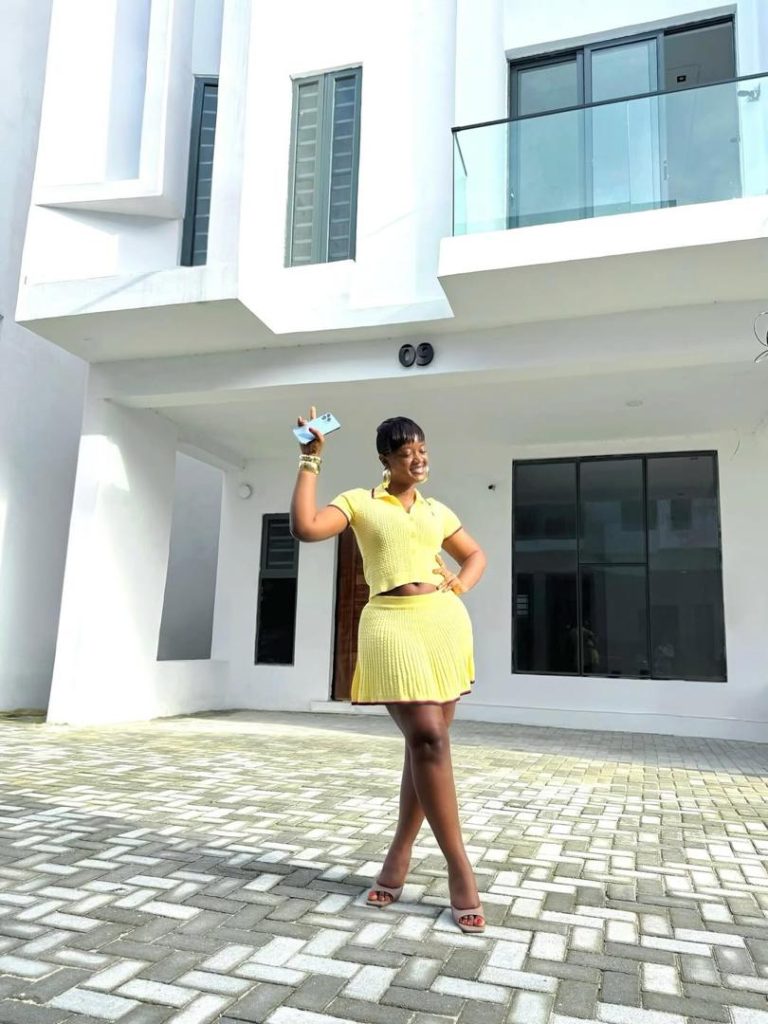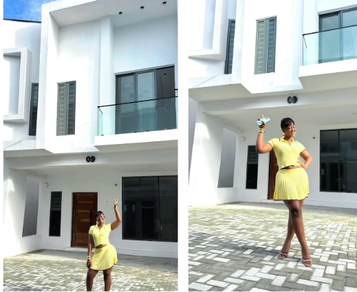 Nollywood actress, Luchy Donalds, is in a celebratory mood as she has become a landlord for the second time this year, according to her, She shared photo of herself posing in front of her newly acquired house and wrote