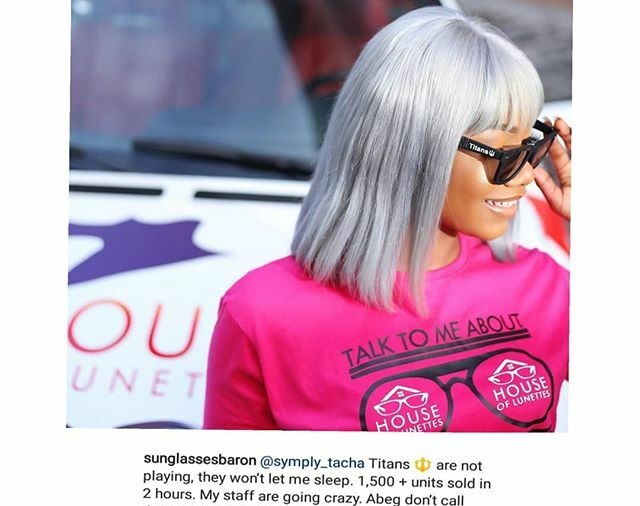 The Management of Lunettes has cry out on their official Instagram account, citing that sales being demanded since Tacha was pronounced their ambassador is overwhelming.