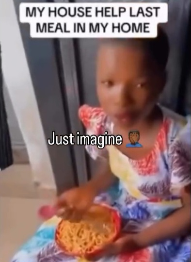 In the video, the maid is seen eating spaghetti while her madam asks her if she eats such in her parent’s house. The girl replies that she doesn’t and only eats staples like fufu and rice at home.