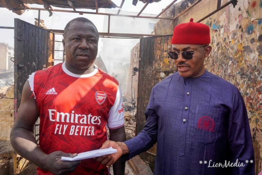 The Accord Candidate in the forthcoming Governorship elections in Anambra State, Dr. Godwin Maduka has yet again demonstrated the kindheartedness rarely noticed amongst Nigerian politicians and especially leaders in Anambra state. Few hours ago the Dr. Godwin Maduka had played the role of a good Samaritan to fire victim at Inland Town Onitsha.