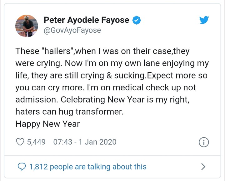 In reaction, Mr Fayose through is Twitter handle @GovAyoFayose accused those commenting on his photos and video to mind their business.