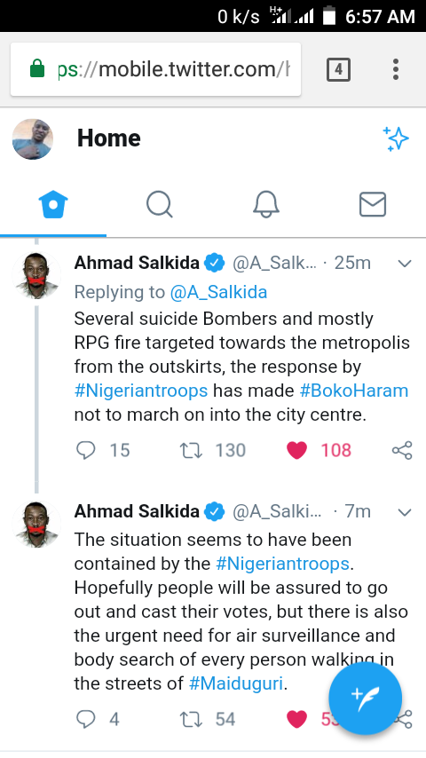 According to the investigative journalist, Ahmad Salkida, the Nigeria has contained the boko haram attacks and peace has been restored, while someone claim no uproar in his area.