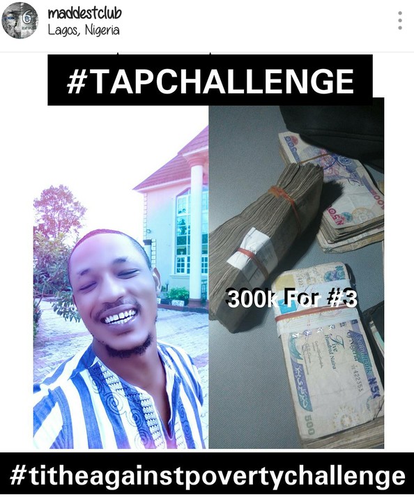 ” titheagainstpovertychallenge #TAPCHALLENGE . I ACCEPT THE CHALLENGE. 300K FOR #3 . HAPPY CHRISTMAS FOR THE HOOD . MUCH LOVE FOR THE PEOPLE . #Istandwithfreeze”.