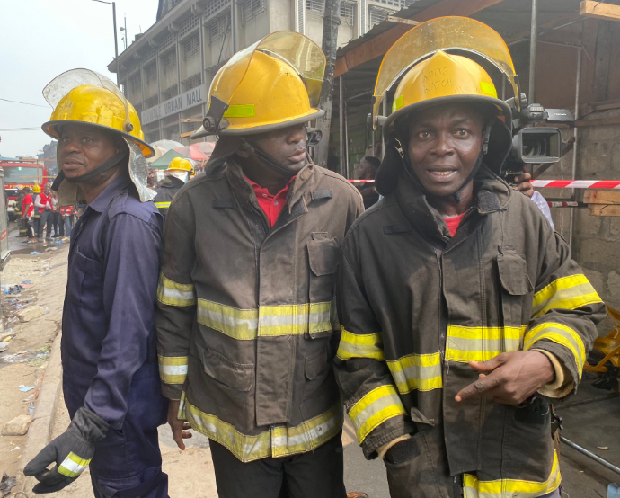This fire has escalated to adjoining buildings totaling seven (7) in number and now is being contained by the Emergency responders-Lagos State Fire Service and the Federal Fire Service and NPA Fire Service. Seven buildings are affected and one has collapsed.