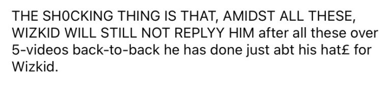 THE SHOCKING THING IS THAT, AMIDST ALL THESE, WIZKID WILL STILL NOT REPLYY HIM after all these over 5-videos back-to-back he has done just abt his hate for Wizkid.”