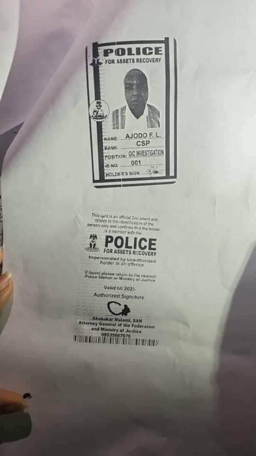 SaharaReporters learnt that the name on the ID Card is Ajodo F. L. of the Police And Assets Recovery unit.