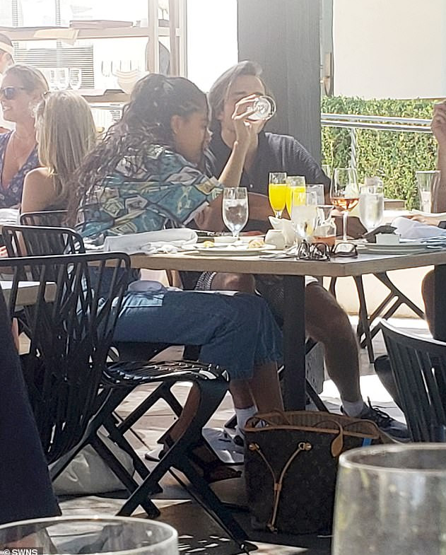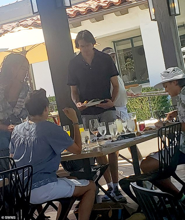 The pair were pictured together with three others, believed to be Rory’s brother and parents, for the meal at Ojai Valley Inn on Sunday.