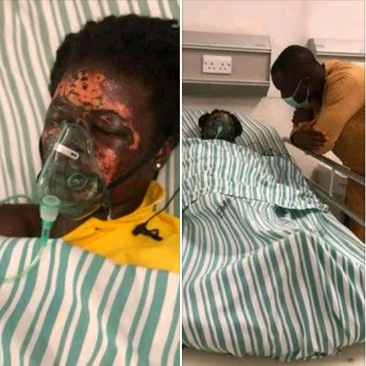 A Ghanaian woman identified as Florence, has been bathed with a susbstance suspected to be acid by her husband, NaijaCover Reports.