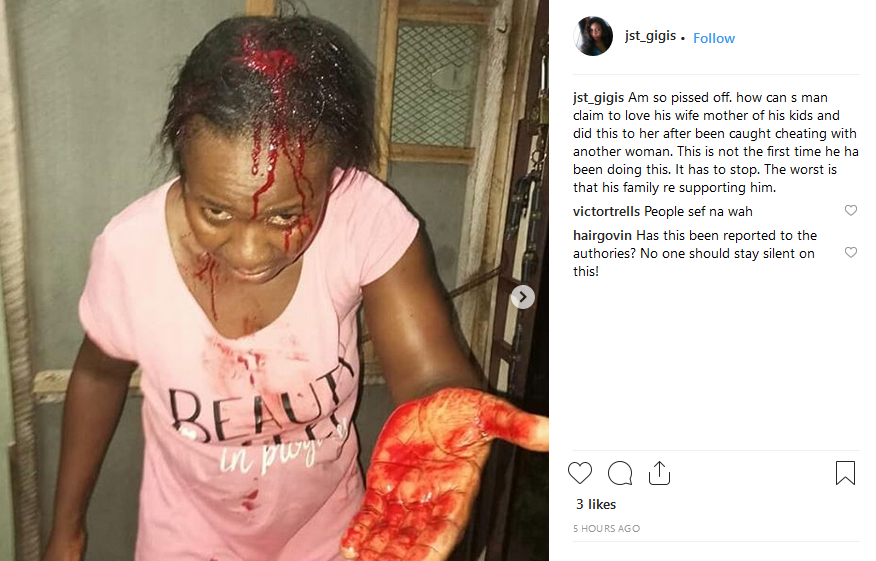 ”Am so pissed off. How can a man claim to love his wife mother of his kids and did this to her after been caught cheating with another woman. This is not the first time he ha been doing this. It has to stop. The worst is that his family re supporting him” Gladys wrote