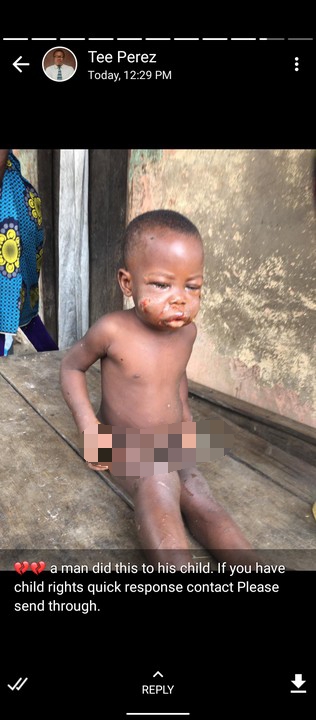 A young man allegedly beats up his 3 year old son in Yenizue-Epie, Bayelsa State , leaving the boy severely injured and unconscious.
