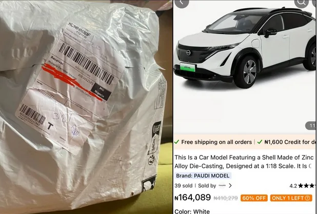 Man vents online after ordering a car from a popular online store, which cost him N164K, only to receive a parcel that was wrapped in nylon.