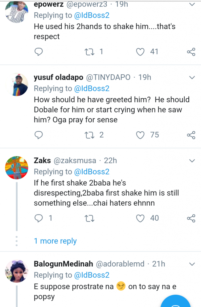 To even see that he looked away after shaking pato, then 2 baba had to stretch his hand to shake him. SMH”.