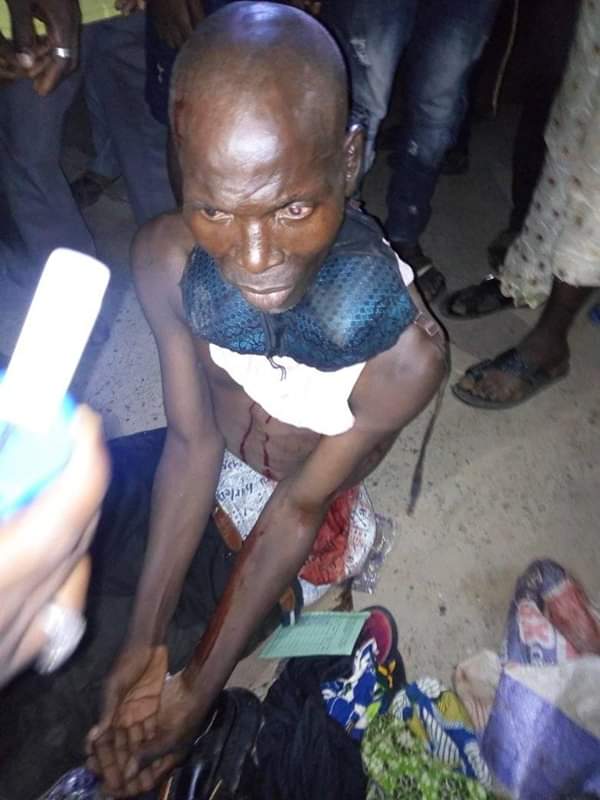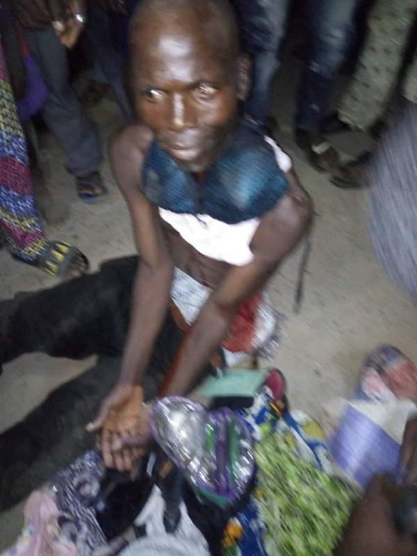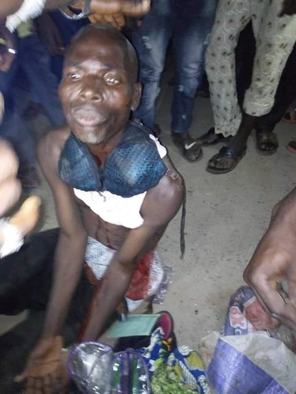 The man pictured below was caught last night with pants, bras, pads, women slippers and some other things in a cement sack bag along Idi Agbon Owode area.
